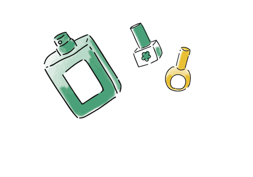 化粧に用いる品。ファンデーション・口紅・マスカラ・アイシャドーなどのメーキャップ化粧品、肌を整えるための基礎化粧品などがある。ごみの分別区分語順検索(け)